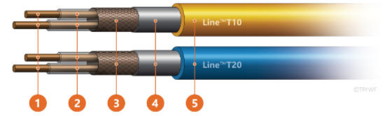 • Používáme kvalitní topné odporové kabely Line™T20 s výkonem 20W na metr a Line™T10 s výkonem 10 W na metr.